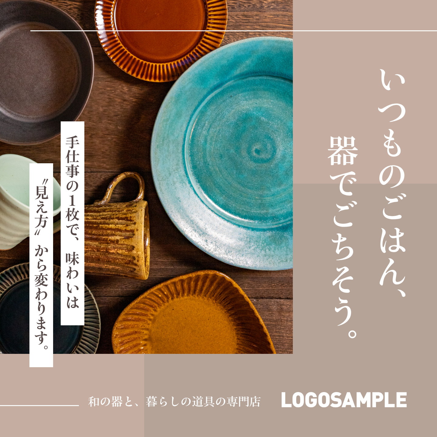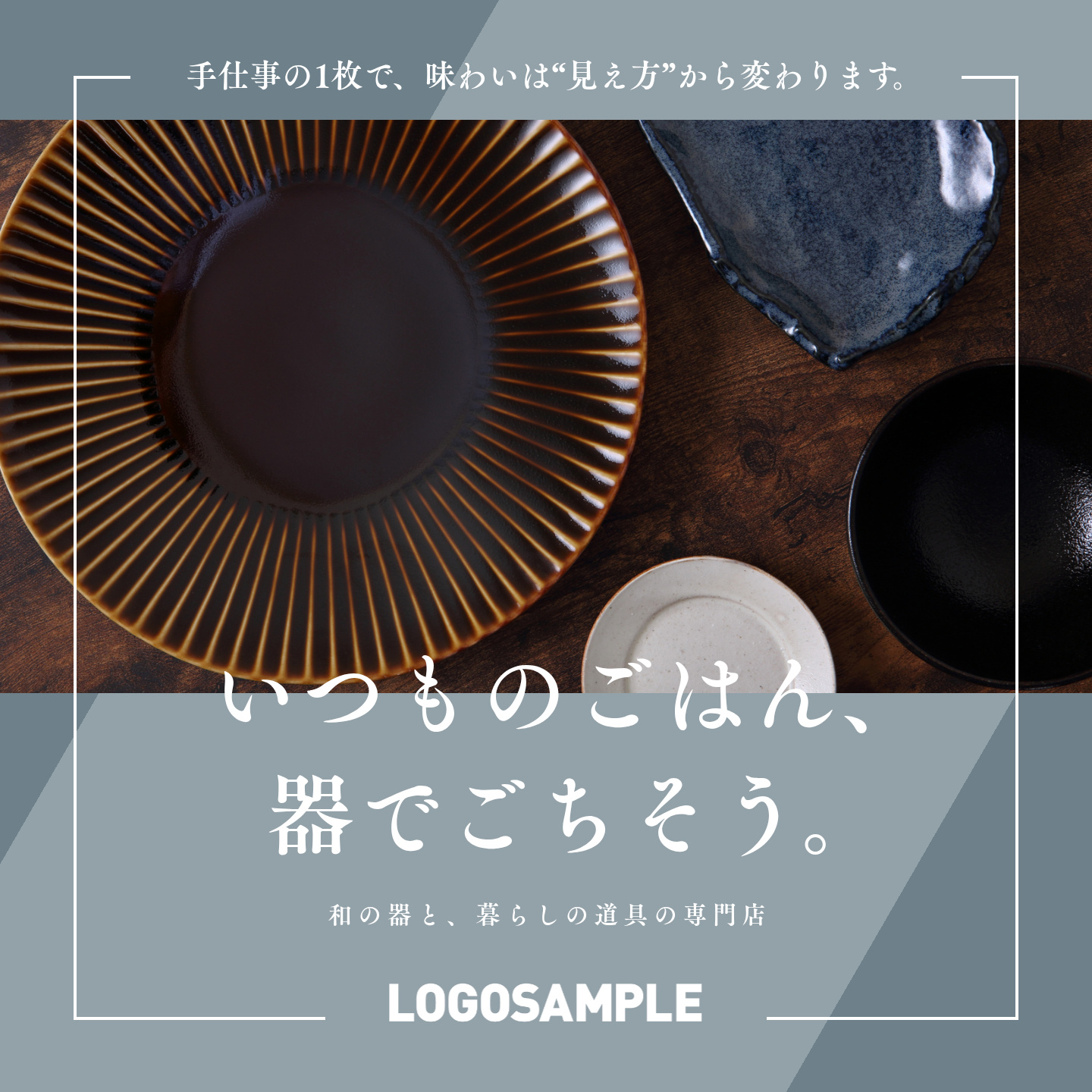 雑誌の表紙のようなデザインで、洗練されたおしゃれな雰囲気を演出。上質な器の質感や暮らしの美しさを引き立て、ブランドの世界観を魅力的に表現します。