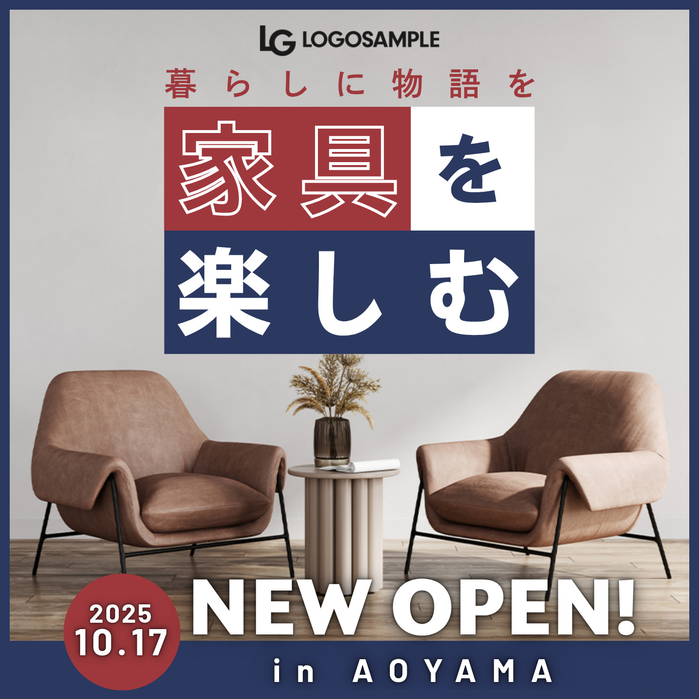 30代の消費者をメインターゲットに、落ち着いたカラーリングで構成した店舗広告フォーマットです。短いコピーを際立たせるレイアウトと図形を活かしたデザインで、視覚的に目を引く構成がポイントです。